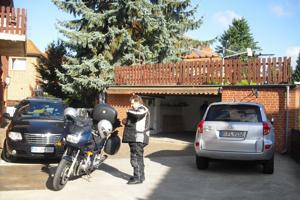 | Übernachtungen waren gebucht und es konnte losgehen. Am Freitag 03.09.10 nach der Arbeit trafen wir uns bei einem Motorradzubehoerladen, am Ende von Osnabrück von mir aus gesehen. Es waren alle pünktlich da. Andreas war der erste dann kamen wir, Anke und ich, der letzte im Bunde war Lothar. Das Wetter war gut zum Motorradfahren trocken und nicht zu warm, vorran kamen wir auch gut. Lotahr mußte uns nur öfters an die Raucherpause erinnern, denn Anke , Andreas und ich sind ja Nichtraucher und brauchen keine Raucherpausen. |